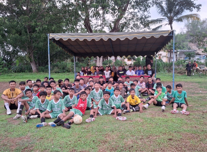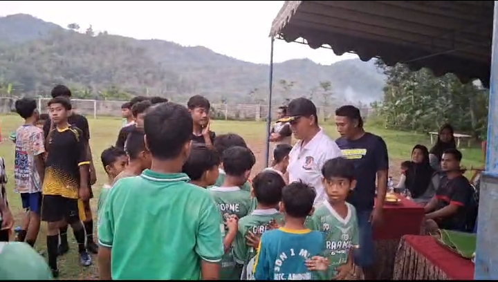 Wahyu Saptonohadi (Topi Hitam) /Paslon 01 Hadiri Pelatihan Sekolah Sepak Bola (SSB) “Rajamura” di Lapangan Gembong Arjosari Pacitan.
