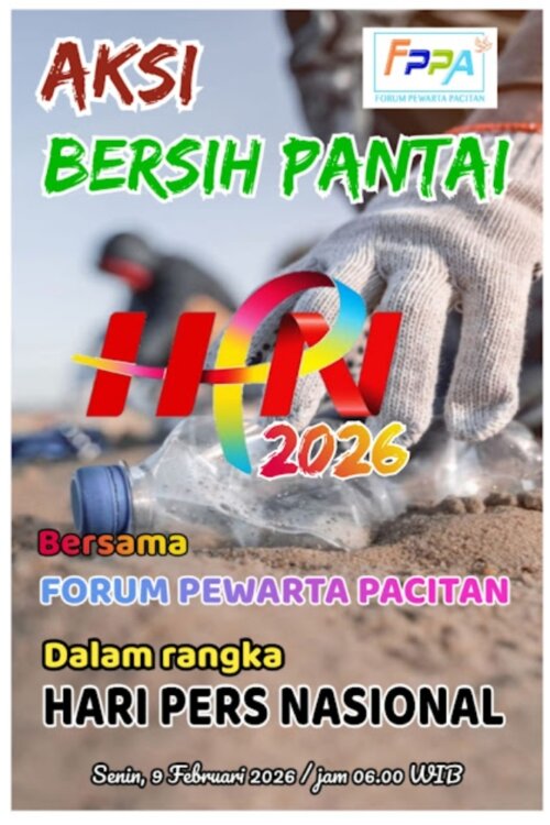 PACITAN,- Peringatan Hari Pers Nasional (HPN) 2026, jurnalis yang tergabung dalam Forum Persatuan Wartawan Pacitan (FPPA) akan menggelar aksi bersih-bersih pantai di Pantai Pancerdor, Pacitan, pada Senin, 9 Februari 2026.