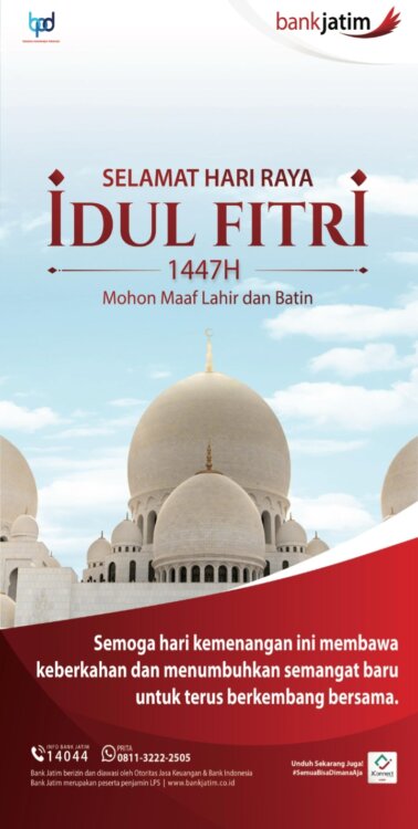 Bank JaTim Pacitan Mengucapkan Selamat Idul Fitri 1447 H Maret 13, 2026oleh adminoleh admin Jangan Lewatkan5 Program Baru Dinas Kesehatan Pacitan.TNI, POLRI, SATPOL PP, DISHUB, BPBD Pacitan Kawal Rontek Gugah Sahur.Kapolres Undang Wartawan Dan Yatim Piatu Buka Bersama.Zakat Bersama NU – CARE LAZISNU PCNU Pacitan.Buka Bersama Kodim 0801 Pacitan Dengan LSM Dan Wartawan.